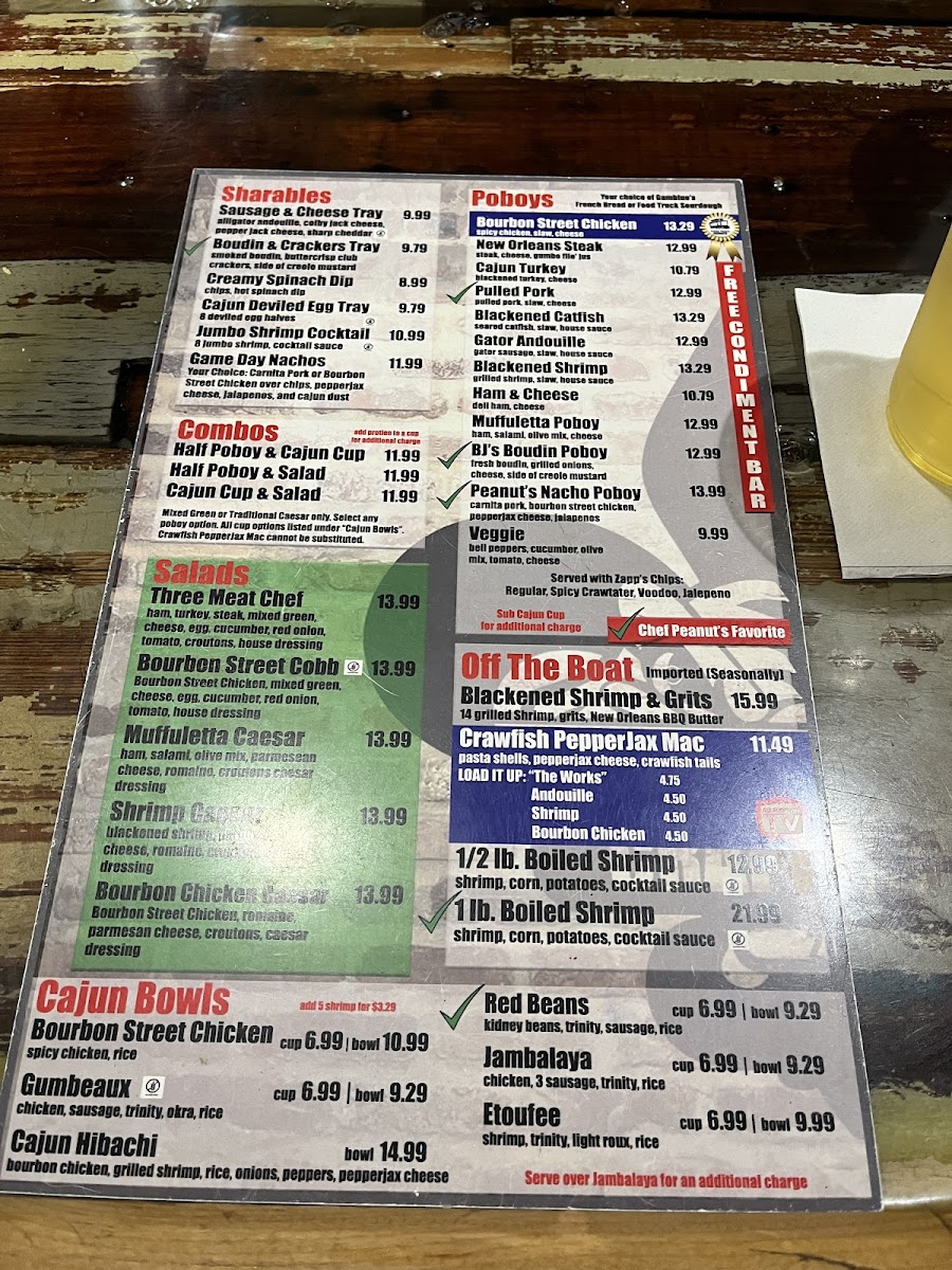 Many guests enjoy pairing half Poboys with a Cajun cup or fresh salad, perfect for a midday break or a light evening meal. The food’s warmth and satisfying nature make it well suited for gathering over shared plates or savoring a solo meal at the bar. Drinks here are served generously, designed to accompany the bold, homemade tastes without overshadowing them.